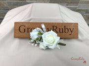 Sometimes due to stock change and availability out of our control we will use flowers, brooches and artificial foliage as close to the ones advertised as possible. However this can result in slight differences - but we assure you the quality will be kept the same and at a high standard. Please note the colours may vary slightly due to the light while photographing. There also may be slight blemishes on the flowers which are produced at the point of manufacturing which is completely out of our control. These terms are agreed when an order is placed. All items are lovingly handmade.